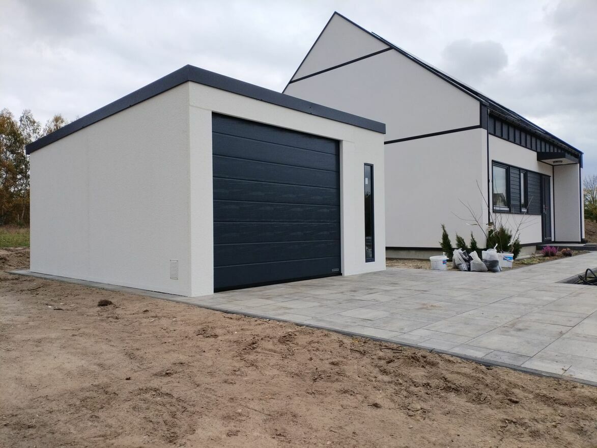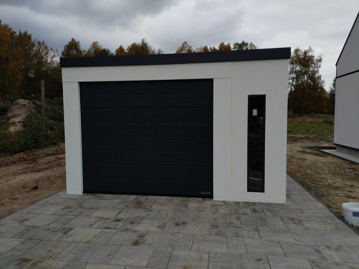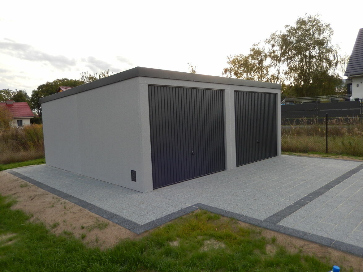 Garaż stalowy tynkowany