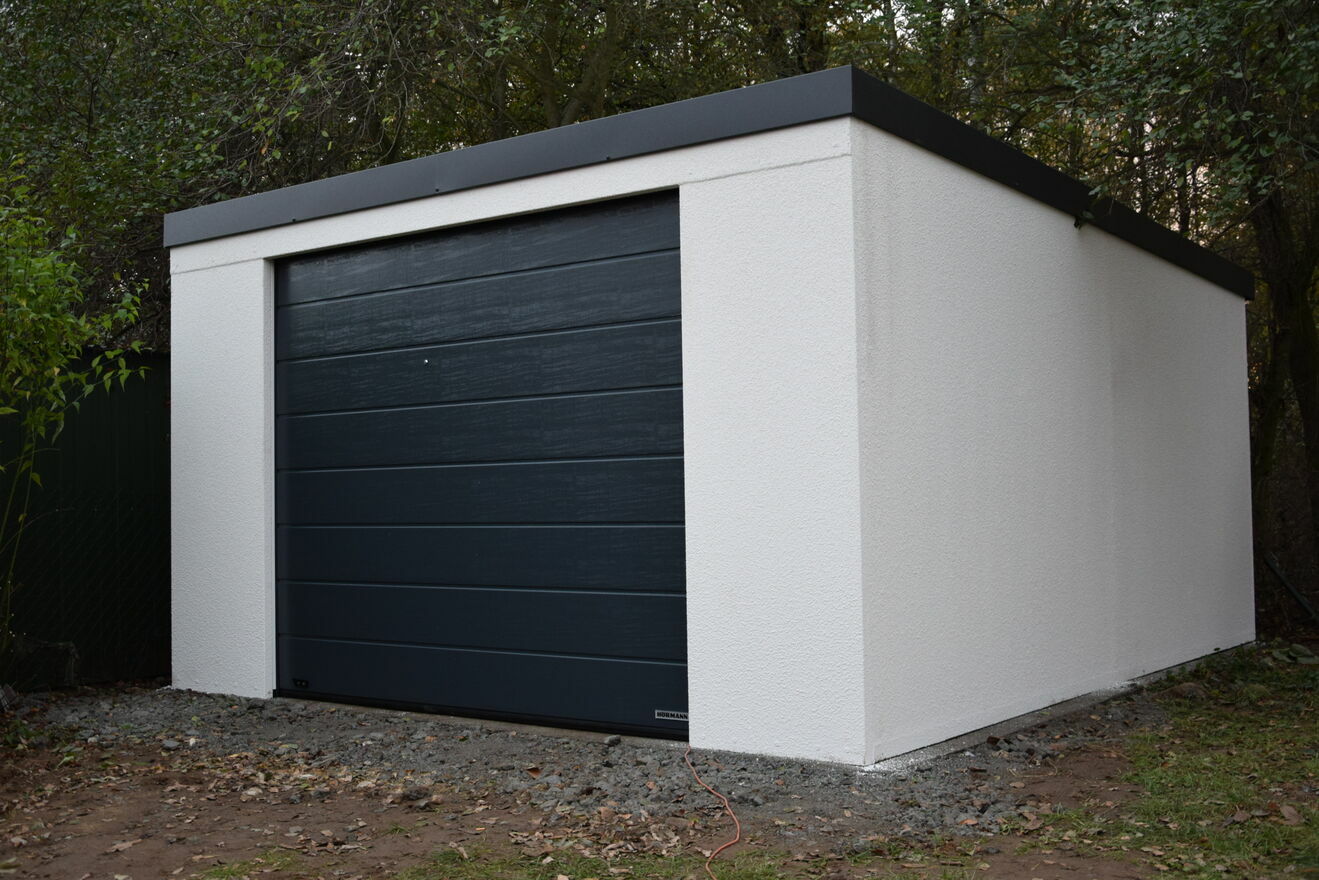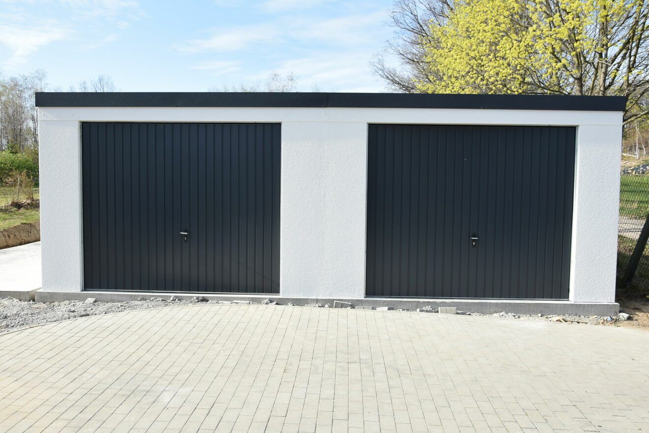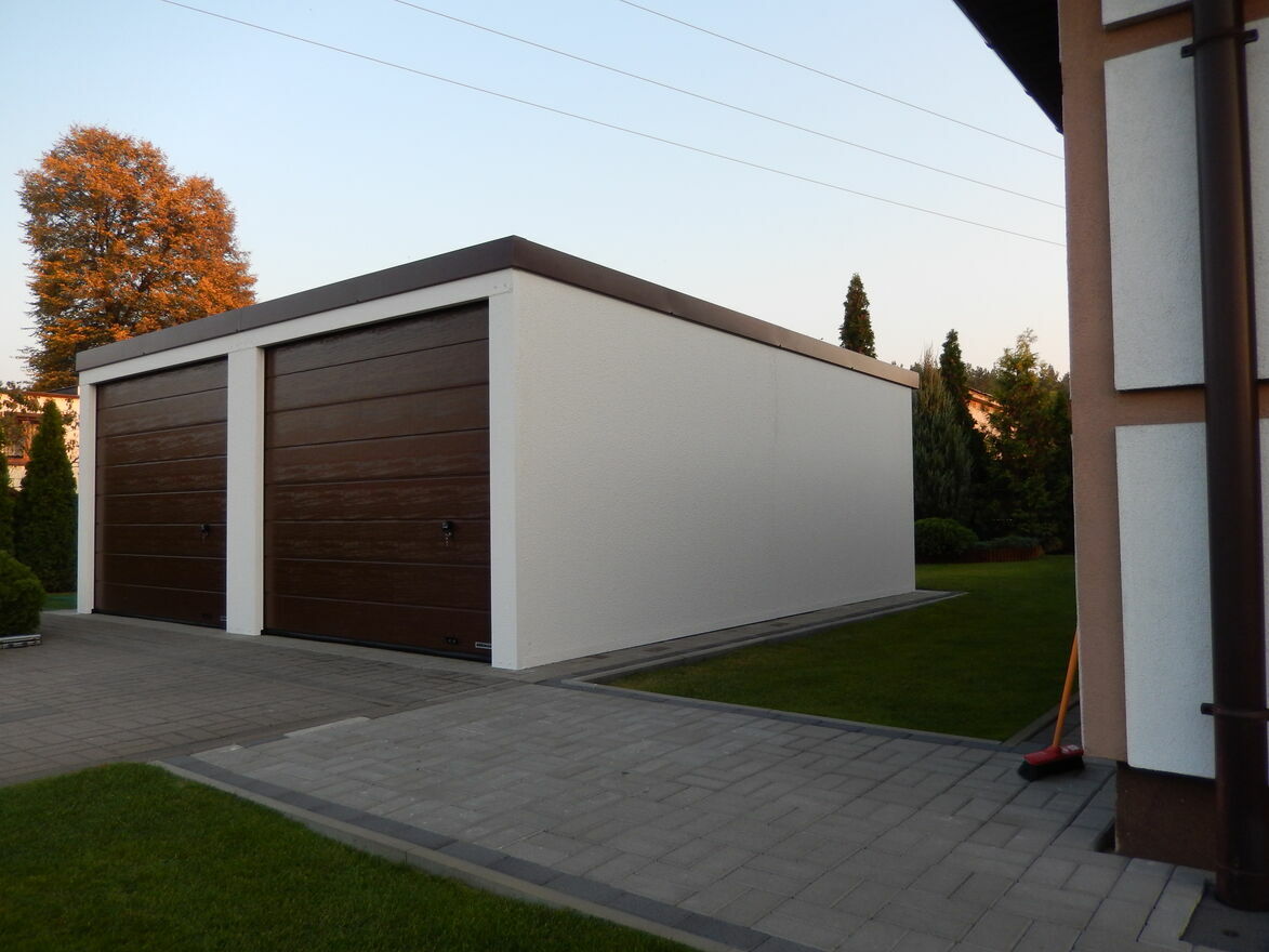 Garaż stalowy tynkowany